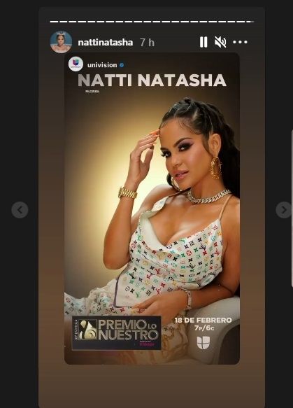 Esta introducción se debe a que una de las artistas que estará presente será la cantante Natti Natasha que está nominada en seis categorías. Debido a ello, recientemente compartió en una de sus historias una publicación de la cadena internacional Univisión haciendo referencia a esta entrega de premios.
