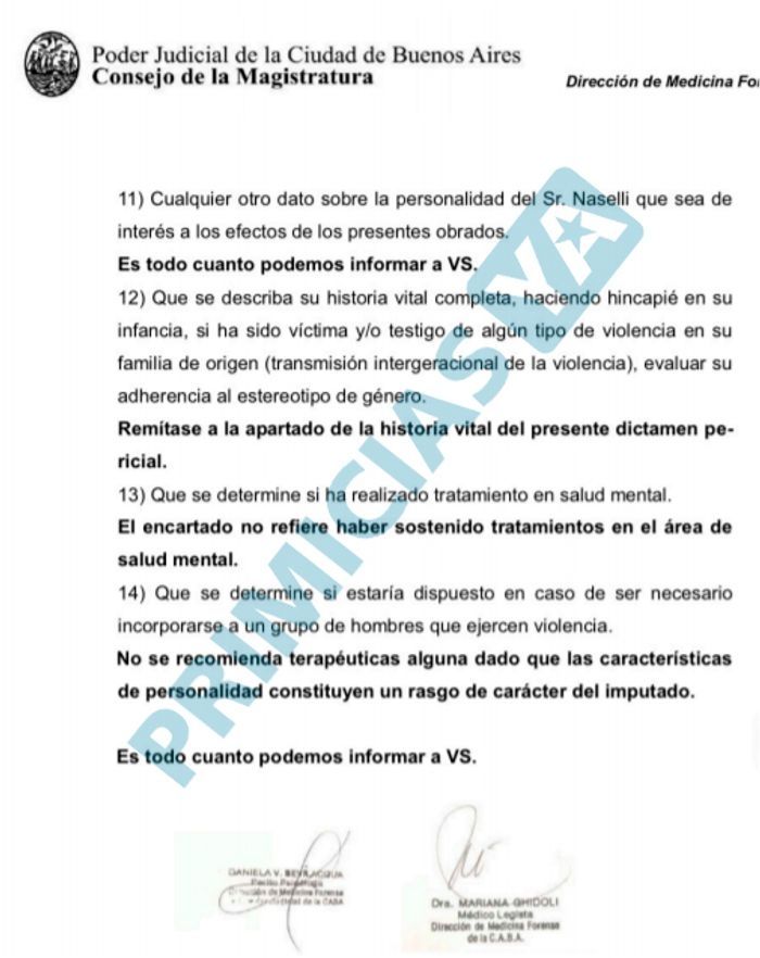 Tras las repercusiones, el mismo medio reveló un nuevo capítulo del escándalo judicial por el que la mediática sigue peleando. Esta vez accedió en forma exclusiva a la revisión psicológica y psiquiátrica que se le hizo a Javier Naselli.