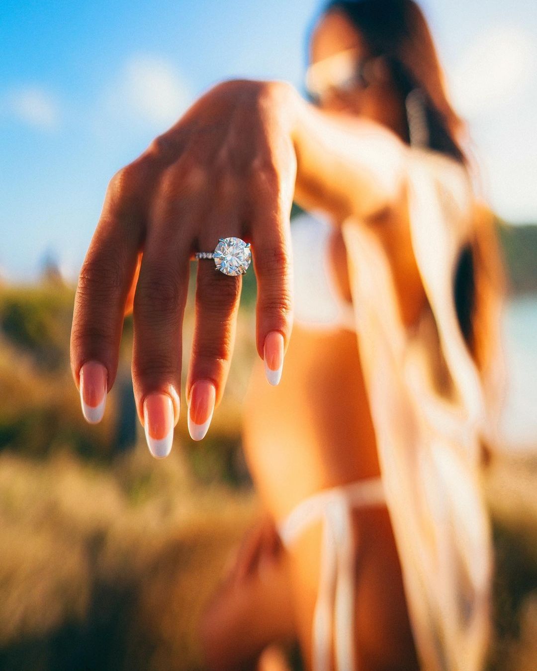 Sobre esto, hace algunas horas atrás, la intérprete de la canción "Mala santa" compartió una foto en su cuenta de Instagram donde se la puede ver lucir una bikini de color blanca que demuestra su bello vientre de embarazada y además en primer plano presume la sortija de compromiso que le dio su prometido. Además a dicha imagen Natti le agregó el siguiente comentario: "Living perfect moments ❤️".