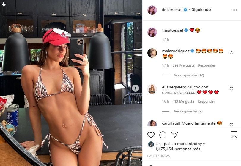 Lo cierto es que recientemente, Tini Stoessel, publicó en su feed de Instagram una serie de fotos donde se la puede ver luciendo un pequeño bikini que demuestra la espectacular figura que posee. Debido a esto más de un millón de seguidores se manifestaron con su like. Sin embargo la reacción que más llamó la atención fue la del cantante Marc Anthony que no se quedó afuera y también dio su "Me gusta" a la imagen.