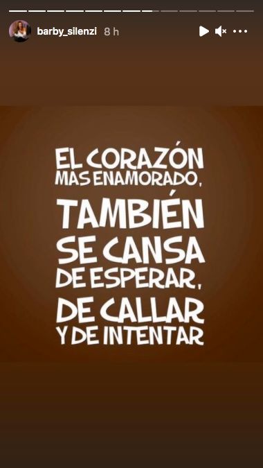 Barby Silenzi publicó esta madrugada un polémico posteo, dejando entrever una nueva crisis de pareja con el Polaco. "El corazón más enamorado también se cansa de esperar, de callar y de intentar", publicó la bailarina.