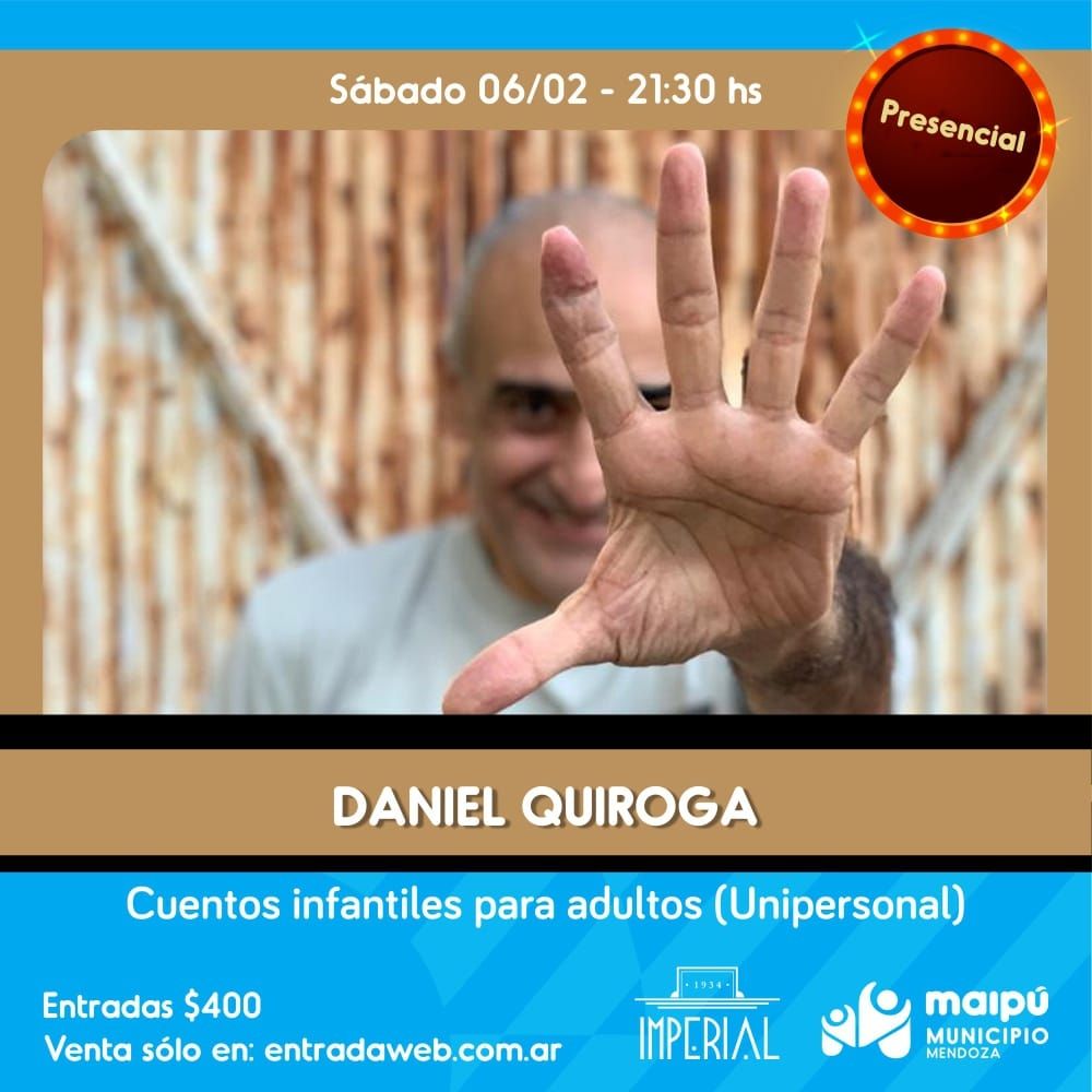 “Cuentos infantiles para adultos” es el espectáculo que Daniel Quiroga ofrecerá al público este sábado en el Teatro Imperial. El unipersonal del reconocido actor mendocino, aborda con ironía algunos de los más populares cuentos clásicos infantiles, buscando un lado B en su dramaturgia y convirtiéndolos en un relato con su sello humorístico personal.