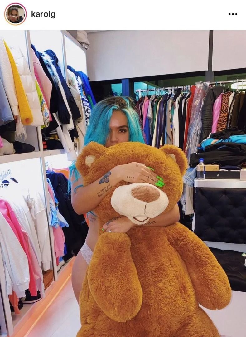 La foto de Karol G con un peluche que se llevó todas las miradas