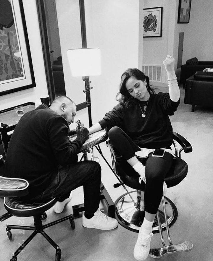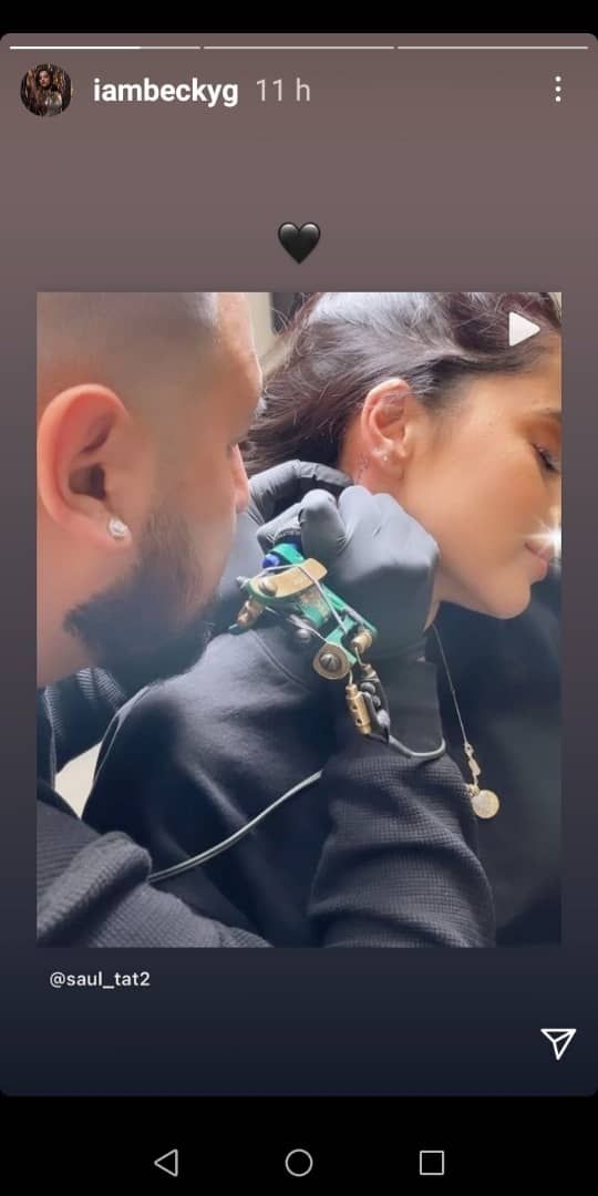 Hace pocas horas Becky compartió a través de su cuenta oficial en Instagram unas imágenes que refleja que se está realizando dos tatuajes, uno en el antebrazo y otro en el cuello. En dicha foto en blanco y negro se puede ver que se encuentra tranquila disfrutando de este momento.