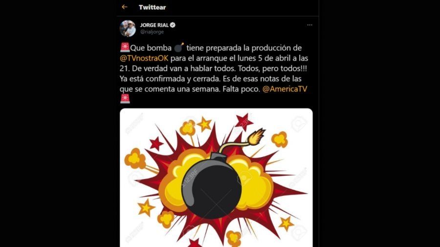 Luego de haber confirmado que Marina Calabró y Diego Ramos son las figuras que van a acompañarlo en su nuevo proyecto, Jorge Rial generó expectativas con distintos anuncios a través de sus redes sociales. En el último mensaje a través de Twitter, el ex Intrusos afirmó: “Que bomba tiene preparada la producción de @TvnostraOK para el arranque el lunes 5 de abril a las 21. De verdad van a hablar todos. Todos, ¡¡¡pero todos!!! Ya está confirmada y cerrada. Es de esas notas de las que se comenta una semana. Falta poco”.