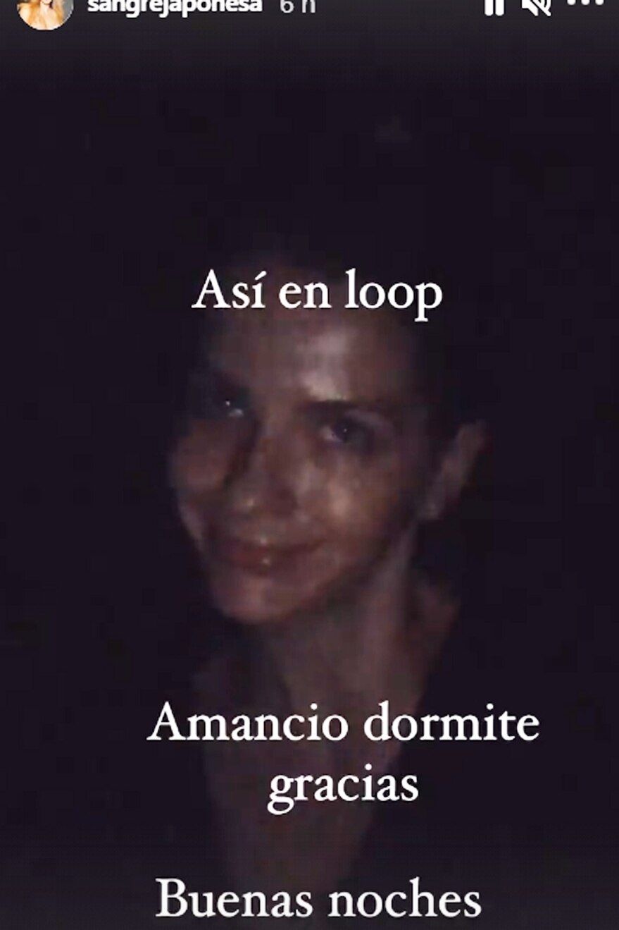 La actriz decidió compartir sus penurias nocturnas a través de una historia de Instagram, en la que aparece el rostro de la artista sin filtro. Junto a la imagen, la artista lanzó un encarecido pedido. “Así en loop. Amancio dormite, gracias, buenas noches”, comentó la pareja de Benjamín Vicuña.