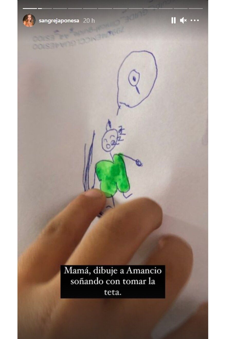 Además, en las últimas horas, La China compartió un dibujo que hizo una de sus hijas, consciente de la alta demanda de lactancia de su hermanito: “Mamá, dibujé a Amancio soñando con tomar la teta”, reza la publicación junto al dibujo que la artista compartió en un gesto de humor y ternura.