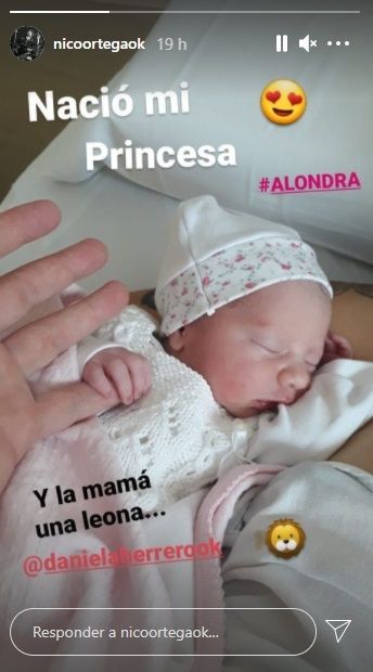 Por su parte, Ortega compartió la misma fotografía de la niña y agregó: "Nació mi princesa Alondra. Y la mamá, una leona". El nombre Alondra es de origen español y tiene procedencia latina, deriva de las aves alondras, cuyo significado es “la que es melodiosa”. Para sorpresa de todos, la pareja le rindió homenaje a sus carreras musicales con su niña.