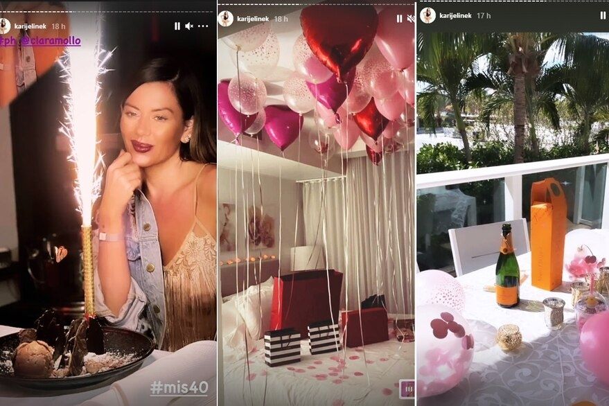 Entre las sorpresas que recibió Karina, se destacó la decoración de su departamento de Ber Harbour con globos rosas y blancos, detalles de los que se encargaron sus amigos. También recibió tarjetas, regalos, dulces y carteras de reconocidas marcas como Dolce & Gabanna y Valentino.