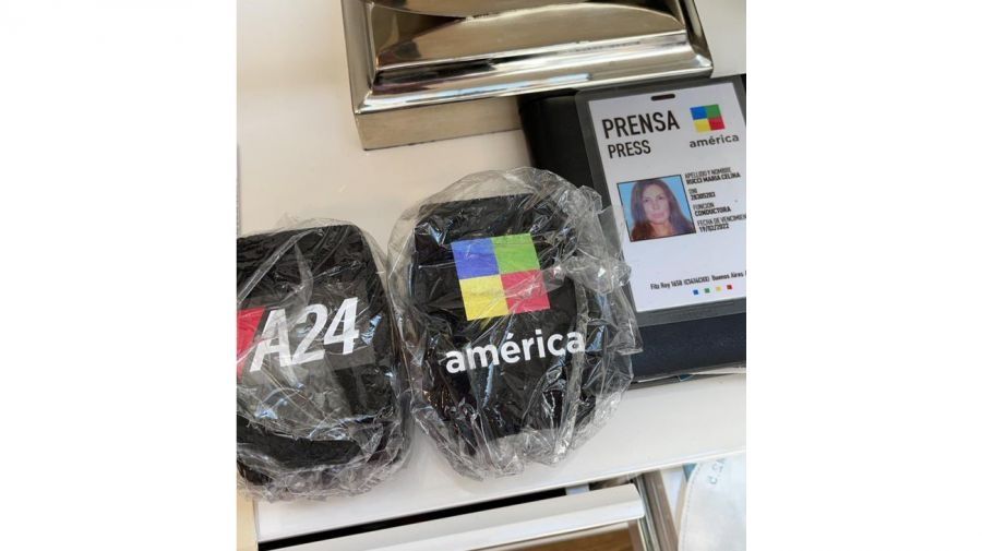 “Celina Rucci contratada por America como corresponsal desde New York”, informó el periodista en Twitter junto a una foto del carnet de prensa de Celina al lado de los dos capuchones de micrófono pertenecientes a los canales del grupo de medios que la empleó: América y A24.