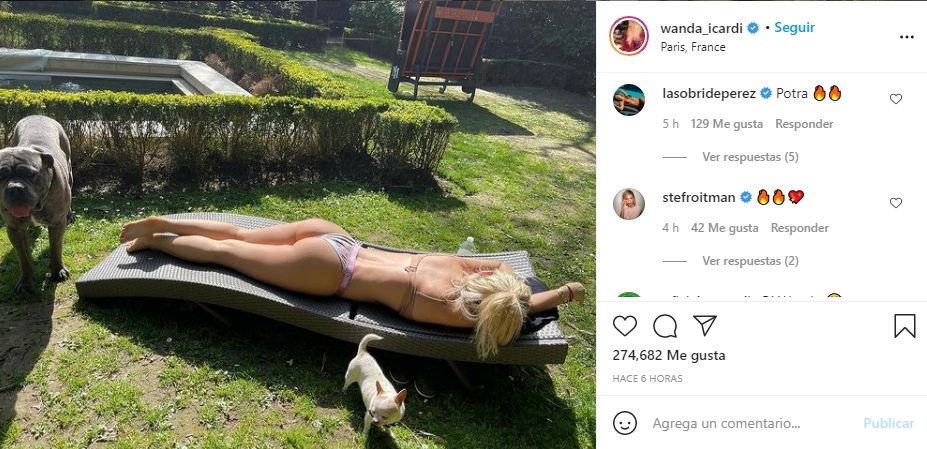 A las pocas horas, su publicación cosechó más de 274 mil "Me gusta" y cientos de comentarios, entre ellos el de Sol Pérez y Stefi Roitman. "Potra", escribió la ex participante de MasterChef Celebrity. Por su parte, la actriz comentó dos emojis de fuego y un corazón.