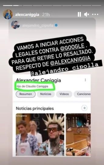El insólito motivo por el que Alex Caniggia le iniciará acciones legales a Google