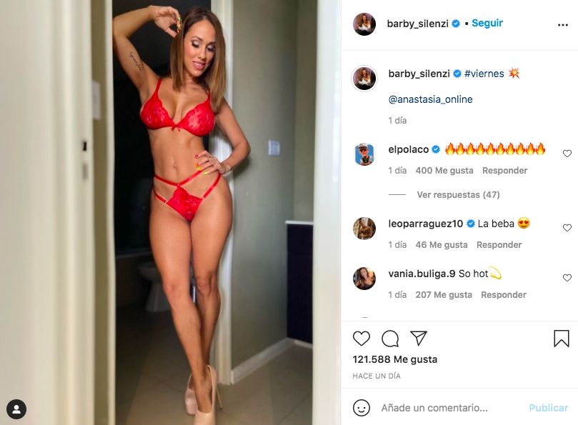 Continuando con su gran actividad en las redes sociales, este fin de semana Barby publicó una foto luciendo un sensual conjunto de ropa interior rojo, con el sutil pie de foto: "Viernes", y la pícara reacción del Polaco fue sumar varios emojis de fueguitos, dando a entender sin palabras lo que su pareja representa para él.