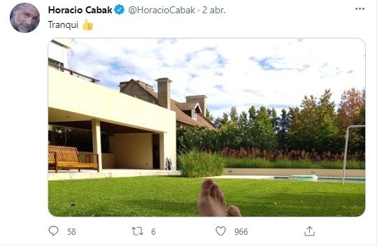 Desde que fue diagnosticado covid-19 positivo, el periodista reportaba diariamente cómo se encontraba en su cuenta de Twitter con un pulgar para arriba y sin dar muchos detalles. Aunque, de vez en cuando, sumaba alguna foto para llevarle tranquilidad a sus fanáticos. Así es como compartió la vista que tenía a sus árboles, la comodidad de una hamaca paraguaya en su hogar y un cargamento de golosinas que consideró como un “botiquín de primeros auxilios” durante su aislamiento.