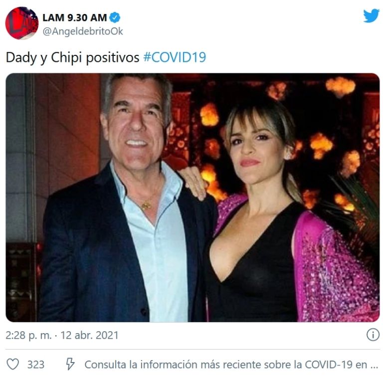 En un comienzo de semana en el que trascendieron los casos positivos de coronavirus de Rodolfo Barili y Claudia Villafañe, en horas de la tarde del lunes también trascendió que Dady Brieva y su esposa, Mariela Anchipi, conocida popularmente como La Chipi, padecen el virus que azota al mundo.
