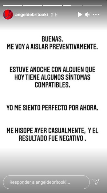 Ángel de Brito no estuvo presente en la emisión de este martes en Los Ángeles de la Mañana. Según informó él mismo, a través de su cuenta de Instagram, su ausencia se debió a que mantuvo contacto estrecho con un caso positivo de coronavirus. El magazine lo llevó adelante la panelista Pía Shaw.