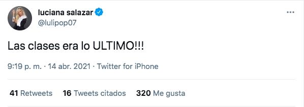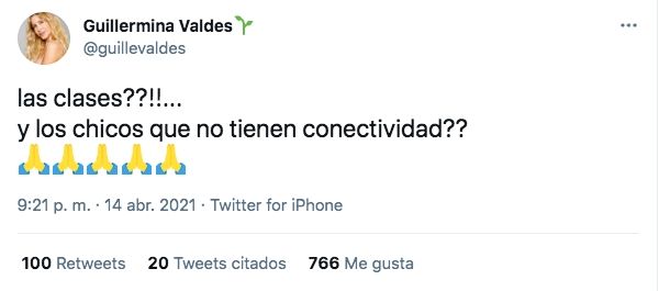 Ante la noticia, algunas celebridades utilizaron sus redes sociales para expresar su opinión. Una de las más encendidas fue Pampita, quien le dedicó varios tweets al tema: "¡La educación es un tema crítico en una emergencia! Los riesgos de contagio con la presencialidad escolar son muy bajos en comparación con las pérdidas que genera la suspensión de clases presenciales en términos de aprendizajes, oportunidades de empleo futuro y justicia social", escribió en el primero.