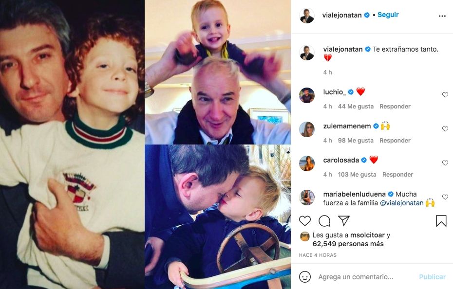 A seis días del fallecimiento de su padre, Jonatan reapareció a través de su cuenta de Instagram: "Te extrañamos tanto", escribió con dolor junto a un collage de imágenes que recopiló de Mauro junto a él cuando era chico y su nieto Romeo.