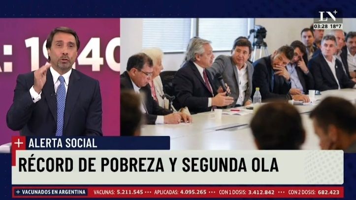"Hay 19,4 millones de personas pobres y con hambre. Me vino de golpe a la cabeza: ¿qué es de la vida de la Mesa del hambre? Esa mesa creada apenas asumido el Gobierno de la República. Mesa del hambre que por primera vez se constituyó en el búnker de Alberto Fernández, en un séptimo piso en Puerto Madero", comenzó diciendo al aire.