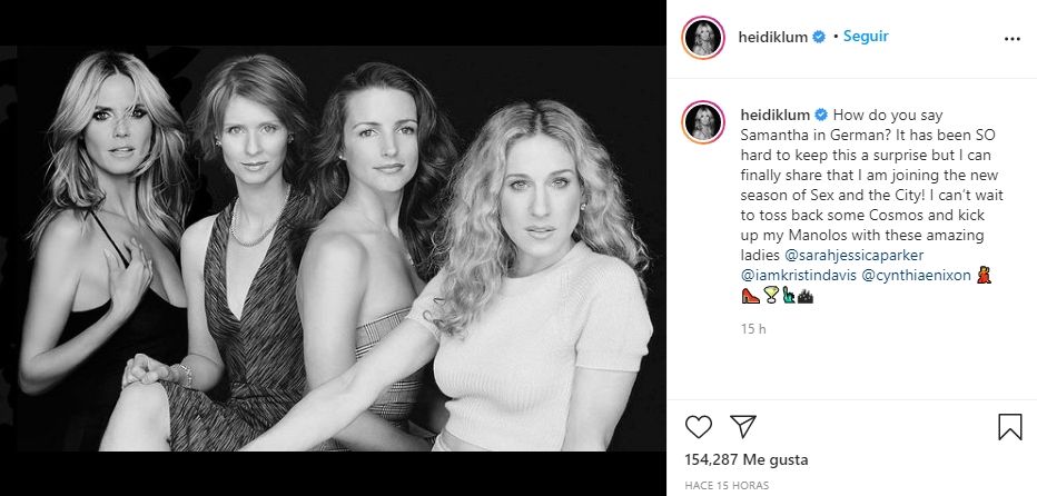En este contexto, Heidi Klum, una modelo, presentadora, actriz, empresaria y diseñadora de moda que fue muy reconocida por ser uno de los ángeles de Victoria’s Secret, publicó en su cuenta de Instagram que sería la reemplazante de Catrall. Por medio de una foto que compartió en sus redes sociales, la modelo confirmó que será la nueva Samantha.