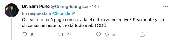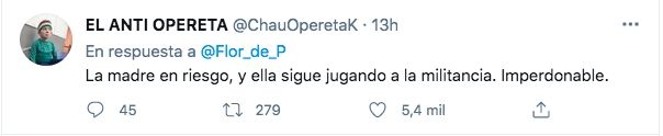 Muchos le salieron al cruce y le señalaron que lo que le estaba pasando a su mamá era responsabilidad del Gobierno kirchnerista que ella apoya.