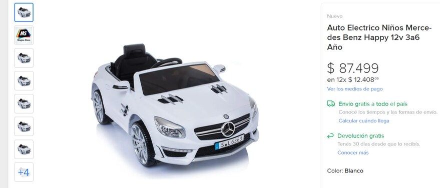El objeto que eligió la panelista de Pampita tiene un valor aproximado de 87.000 pesos en tiendas virtuales. El pequeño vehículo eléctrico de unos cuatro kilómetros y medio por hora y permite un peso de hasta 25 kilos. Tiene luces LED, puertas que funcionan y una autonomía de dos horas. Para tranquilidad de los padres, también se maneja a control remoto.