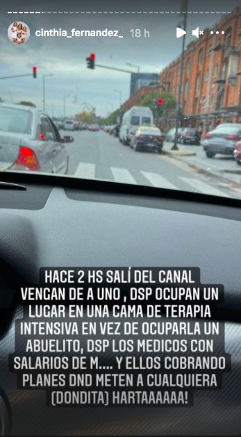 "Acabo de llegar a mi casa. ¿Qué hora es? 16.12. A las 13.00 salí. Así que, si tengo ganas de putear, voy a putear", comenzó diciendo la panelista en las historias que subió a Instagram desde el interior de su auto. Luego, subió la música, simulando gritar, "para sus adentros".