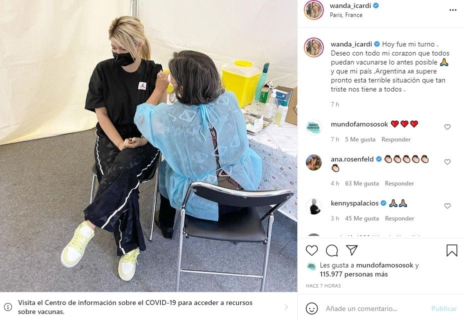 Desde hace varios meses, Wanda Nara se encuentra instalada en Paris por el trabajo de su marido Mauro Icardi. Actualmente el joven juega en el París Saint Germain. En las últimas horas, desde la capital francesa, la mediática compartió una emotiva postal: la blonda recibió su primera dosis contra el covid-19.