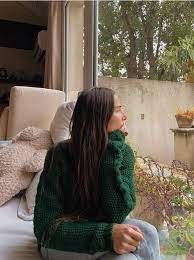 En la imagen, se la ve a la conductora pensativa contemplando hacia el exterior. Con un ourtfit casual, pantalón de jean y un bello sweater de lana verde, Juana despertó los elogios de sus fans.