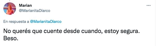 "Te contesto y sigo trabajando, así dormís tranquilo. Nuestro hijo mejor no podría estar. Soy una buena mamá, no te confundas. Preocupate por que nadie se entere que con la cincuentona del programa de la tarde vienen de antes de lo que la gente piensa. No querrás que cuente desde cuándo, estoy segura. Beso", sentenció Diarco.