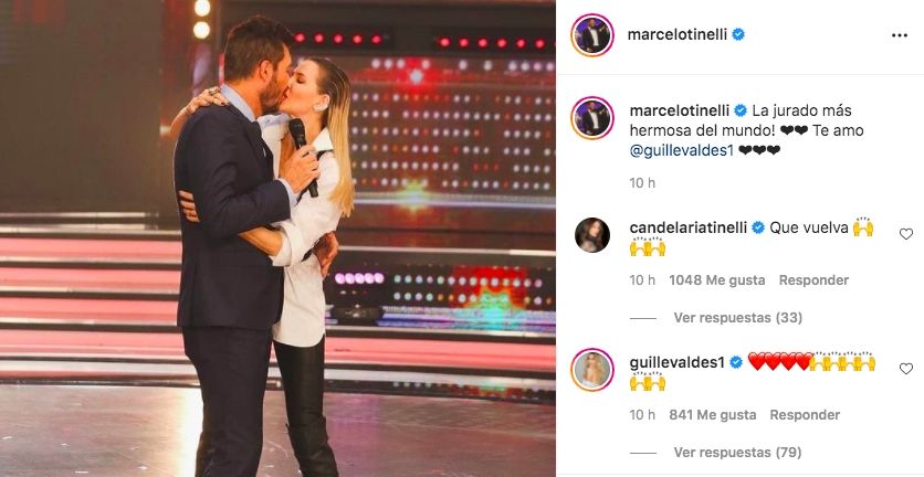 Mientras tanto, Tinelli también eligió las redes sociales para graficar este momento que compartieron como pareja al aire. En este caso, prefirió la red social Instagram en donde publicó una postal de esta noche con la frase "la mejor jurado del mundo" y cerró con un "te amo".