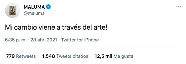 Uno de los primeros artistas colombianos en manifestarse fue el cantante Maluma, quien el sábado usó sus redes sociales para publicar un escueto mensaje señaló: "¡Mi cambio viene a través del arte!".