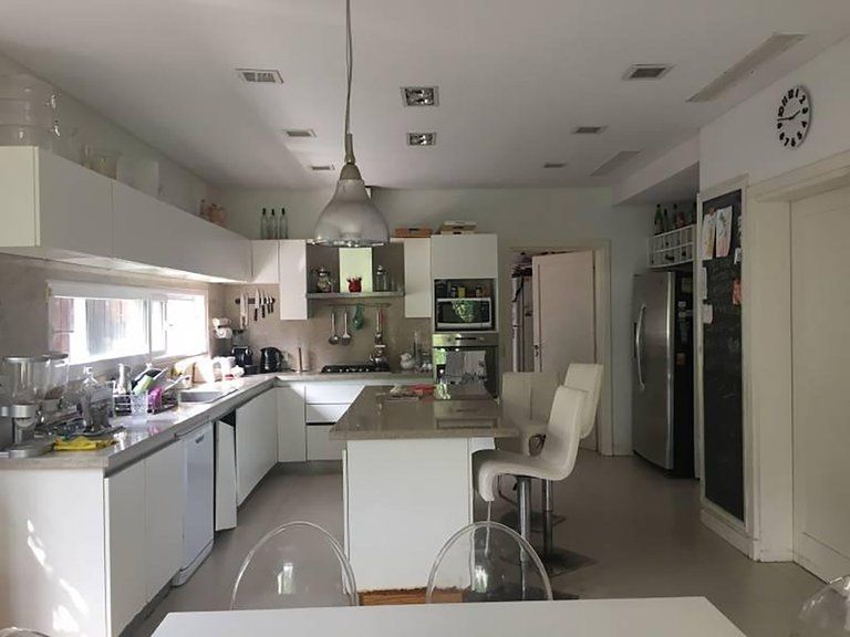 Según el aviso de ZonaProp, la planta baja de la casa cuenta con un amplio hall de entrada, un lujoso living coronado con una llamativa chimenea y un gran comedor; todos estos sectores cuentan con salida a una amplia galería. Además, la propiedad tiene una amplia cocina, un comedor diario con family incluido, dependencia de servicio y lavadero. Los pisos son de madera patinados.