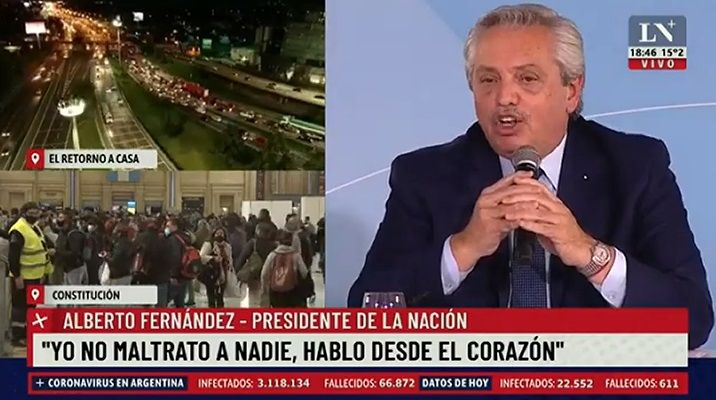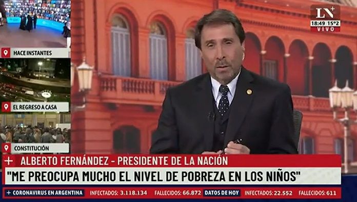 Al aire, también se detuvo a analizar que, según Fernández, "los argentinos la están pasando mal por culpa de la pandemia". Con respecto a esto, disparó: "Claro, Presidente, hay un 40% de pobres, si a usted no le importó un 10% más de pobres el año pasado, cuando dijo que no le importaba un 10% más de pobres. Ahora habla del 40% más de pobres que la están pasando mal por culpa de la pandemia. No, es por culpa de la cuarentena”.