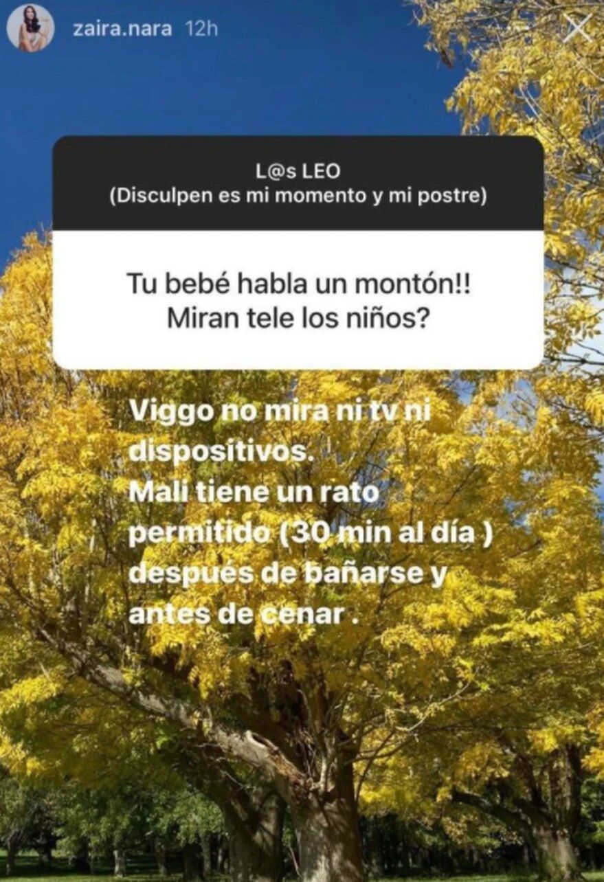 En este sentido, Zaira Nara que impuso en su casa estrictas reglas para limitar su tiempo frente a las pantallas. Fue en sus redes sociales donde la hermana de Wanda comenzó a responder preguntas de sus seguidores. Entre las preguntas que le hicieron llegó una muy particular referida a la crianza de los hijos.