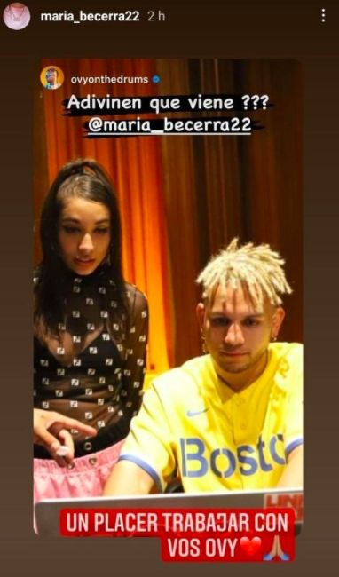 Poco después, aparecieron fotos de María Becerra en un estudio de grabación junto a Ovy on the Drums, y las redes sociales explotaron al punto tal de convertirla en trending topic en pocas horas. "Adivinen qué viene??", publicó Ovy on the Drums arrobando a la cantante; a lo que Becerra respondió: "Un placer trabajar con vos Ovy".