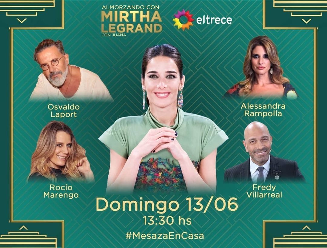 Por su parte, los invitados que acompañarán a Juanita el domingo 13 en Almorzando con Mirtha Legrand, desde las 13.30 hs., serán: el actor Osvaldo Laport, quien representará a la comunidad artística; la boricua Alessandra Rampolla, que formará parte de El club de las divorciadas en la pantalla de eltrece desde el próximo lunes; la actual participante de La Academia de ShowMatch Rocío Marengo; y el humorista Fredy Villarreal, también actualmente trabajando en el programa de Marcelo Tinelli.