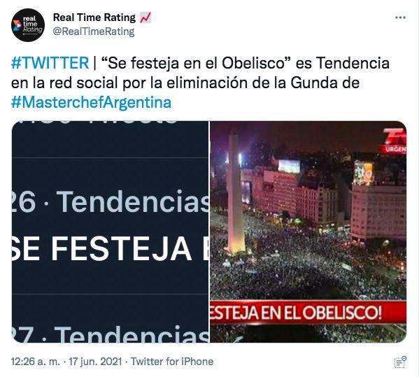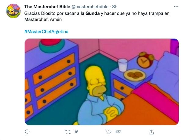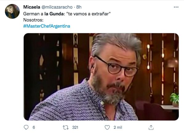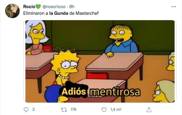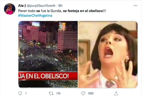 Claudia Fontán quedó eliminada de MasterChef Celebrity en una gala muy intensa que alcanzó niveles históricos en rating de la televisión abierta. Ante la sorpresiva eliminación de la participante, los seguidores del certamen de cocina se volcaron a las redes sociales y compartir memes festejando la eliminación de la Gunda. Es más, la frase "se festeja en el Obelisco" se transformó en tendencia en Twitter.