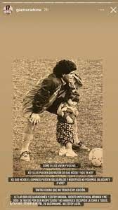 En esta oportunidad, Gianinna Maradona compartió en su cuenta de Instagram una foto junto a su padre en un entrenamiento, cuando jugaba en Europa. “Cómo ellos viven y vos no... ¿Por qué ellos pueden disfrutar de sus hijos y vos ya no? ¿Por qué sus hijos el domingo pueden saludarlos y nosotros no podemos saludarte a vos?”, es parte del fuerte texto que acompaña a la imagen.