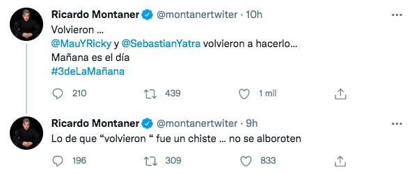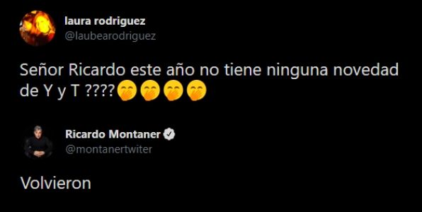Ahora, el que se sumó a los rumores de reconciliación fue Ricardo Montaner, que respondió a las preguntas de sus seguidores sobre si sabía de "Y" y "T". "Volvieron", dijo sin dar más detalles.