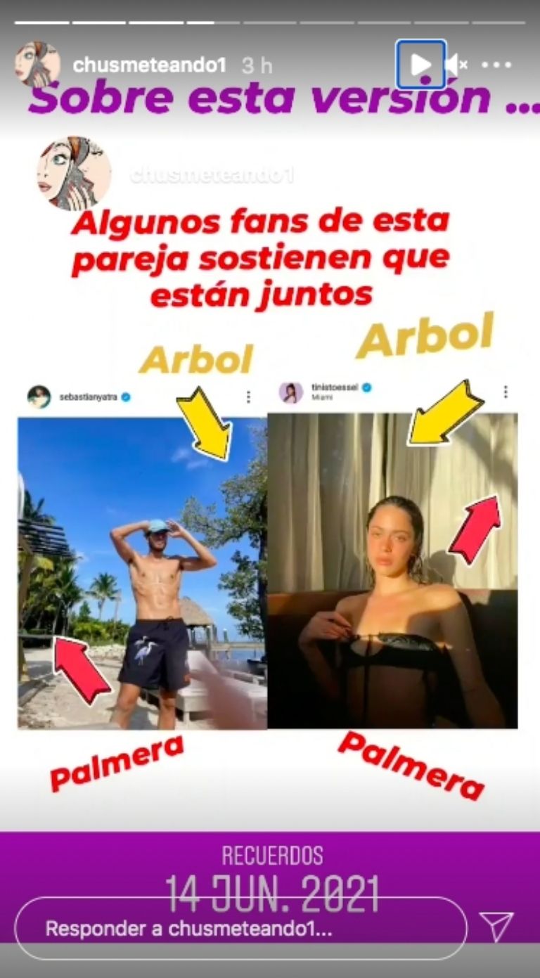 A un año de su separación, Tini Stoessel y Sebastián Yatra estarían nuevamente juntos. Fueron las especialistas en redes de los famosos, Juariu y la página de Instagram Chusmeteando1, quienes detectaron algunos detalles en las últimas fotos que subieron los cantantes a sus redes sociales. En ellas, quedaría en claro que están hospedados en el mismo hotel en Miami.