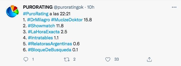 En el horario estelar, la franja comenzó con el mano a mano entre Doctor Milagro y La Academia de ShowMatch. El certamen conducido por Marcelo Tinelli llegó a 11.8 con el duelo de bailarines, mientras que la novela turca lideró con una marca máxima de 19 puntos.