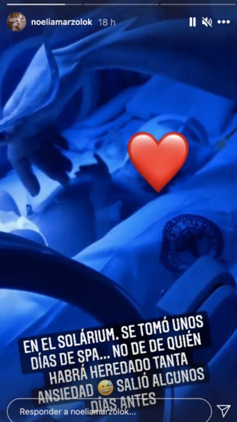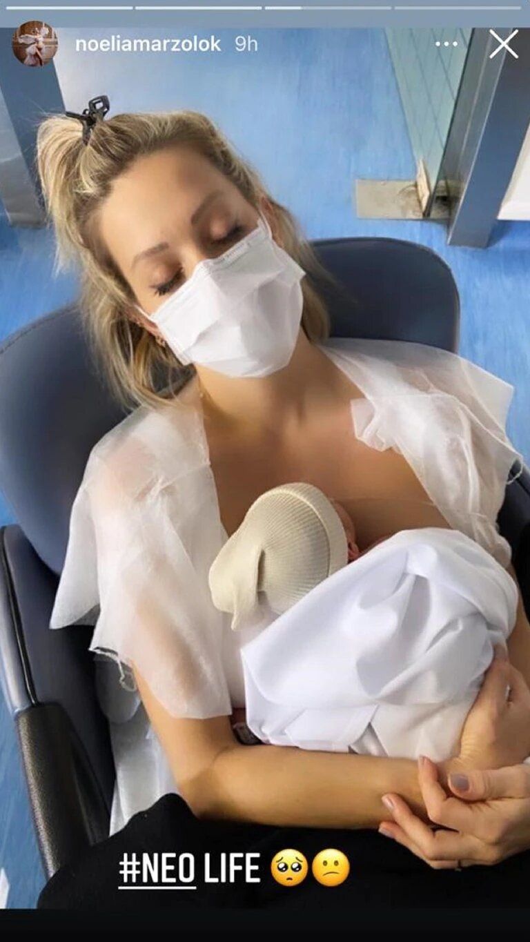 Durante estos días, la modelo viene compartiendo varias fotos familiares. “Neo life”, escribió. "Se tomó unos días de spa. No sé de quién habrá heredado tanta ansiedad. Salió algunos días antes", había escrito Marzol en otra historia en la que se veía a Doni en la incubadora recostado con la lámpara de ictericia.