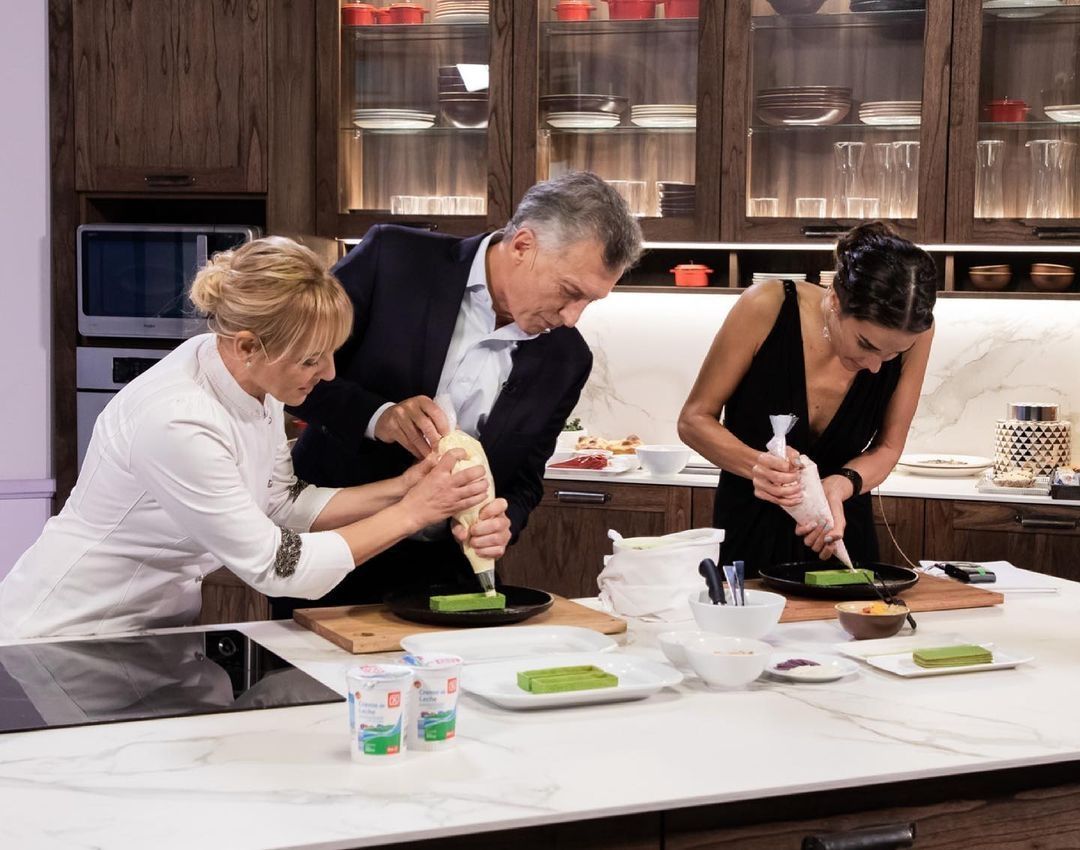 Mientras las primeras tres imágenes fueron captadas durante la cena, en la cuarta se la ve a la actriz junto al exmandatario y la chef Jimena Monteverde. En la última foto, Juana y Mauricio posaron delante de la mesa.