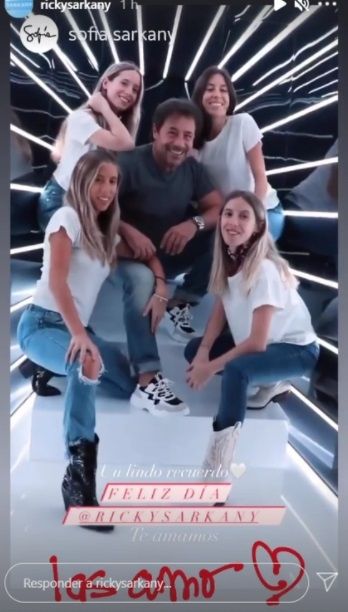 "Un lindo recuerdo. Feliz día Ricky Sarkany. Te amamos", se alcanza a leer en la postal en la que se lo ve al hombre junto a Josefina, Clara, Violeta y Sofía posando felices frente a la cámara.