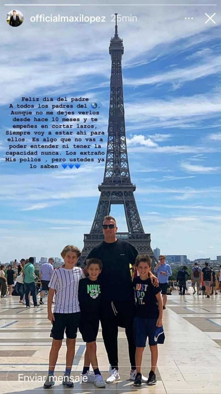 "Feliz día del padre a todos los padres del mundo. Aunque no me dejes verlos hace diez meses y te empeñes en cortar lazos, yo siempre voy a estar ahí para ellos. Es algo que no vas a poder entender nunca", aseguró Maxi en su posteo.