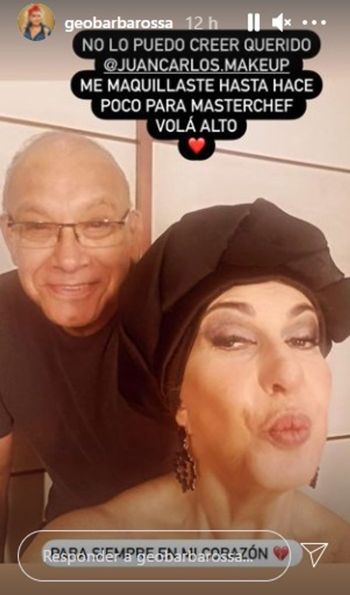 Pero Juan Carlos también maquillaba a otras famosas, entre ellas a Georgina. Antes de su internación, había maquillado a la actriz para las galas del exitoso reality. Enterada de la noticia, la actriz reaccionó con mucho dolor en sus redes. "No lo puedo creer querido Juan Carlos. Me maquillaste hasta hace poco para MasterChef. Volá alto".