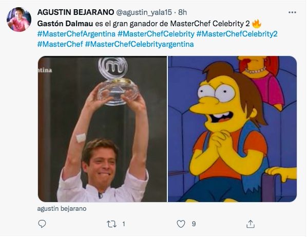 A continuación, algunos de los memes que celebraron la gran victoria de Dalmau en el certamen gastronómico de Telefe.