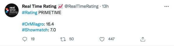 En relación a uno de sus competidores directos, Doctor Milagro le sacó más del doble de diferencia a ShowMatch, marcando 16.4 y 7 puntos respectivamente.
