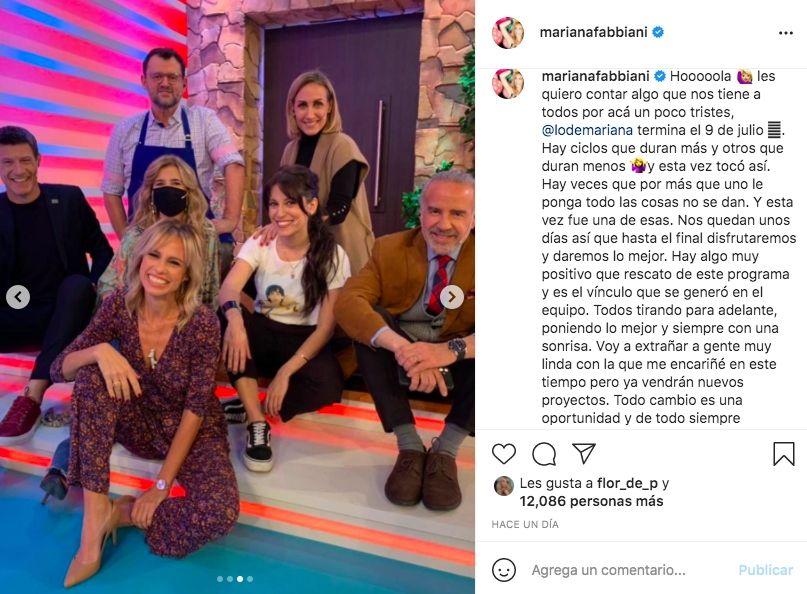 El regreso tendrá lugar luego de que finalice Lo de Mariana. Fue la misma Fabbiani quien anunció con pesar el final del programa que la tuvo como conductora y que marcó su regreso a la televisión. "Hay ciclos que duran más y otros que duran menos y esta vez tocó así. Hay veces que por más que uno le ponga todo las cosas no se dan. Y esta vez fue una de esas", expresó la conductora a través de su cuenta de Instagram.